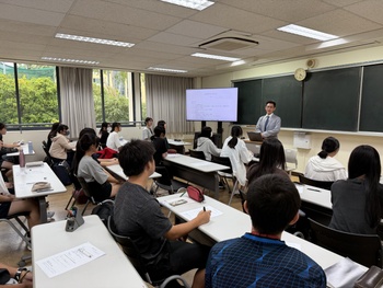 講義では、自治体が国境を越えて交流する「自治体外交」について、その定義や鹿児島県とシンガポールの交流といった具体例が紹介されました。本来は国が担う「外交」を自治体が行うことについて、法的な観点からその意義や課題にも触れられました。