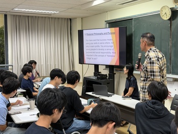 講演は、まずLam氏が従事されている「コンサルタント」の仕事紹介から始まりました。それは単に企業の課題を分析するだけでなく、複雑化する社会の問題に対して「アドバイスを与え、解決する」仕事であること、そして何よりも「人と関わる仕事」であると強調されました。その上で、優れたコンサルタントに必要なスキルとして、「Listening well(よく聞くこと)」「Ask the right question(正しい質問をすること)」、そして「問題は必ず解決できると信じること」の3点が挙げられ、「聞くことは単なる受け身の姿勢ではなく、積極的なスキルである」という言葉に、多くの生徒が感銘を受けたようでした。