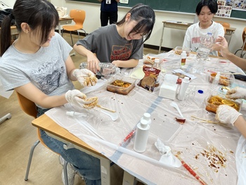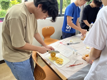 Gardens with Purposeから講師の方をお招きし、Eco Enzymesの科学と実践のワークショップを開催しました。2年生20名がワークショップに参加し、酵素について学びを深めました。生徒たちは、果物の皮などの生ごみが発酵の力で「万能洗剤」や「有機肥料」に生まれ変わる仕組みを学習した後に、実際に手を動かし、オレンジ、砂糖、水を混ぜて酵素作りを体験しました。「身の回りにあるもので、こんなに簡単に酵素を作れるなんて驚いた!」との声もあり、身近な科学とSDGsへの理解を深める貴重な機会となりました。