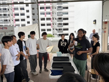 2年生20名がUrban Farmの施設見学を行いました。Urban Farmは「都市農業」と訳され、都市部やその近郊で食料を生産する活動を指します。今回訪問した施設はHDBの屋上にあり、様々な野菜や植物が栽培されているのが特徴です。