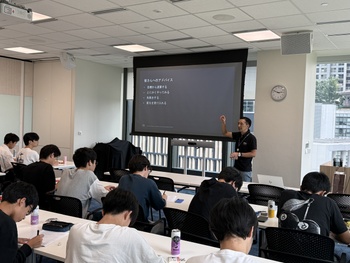 企業訪問は、3名の社員の方による講演から始まりました。講演では、アマゾンが掲げる「地球上で最もお客様中心の企業になる」という企業理念や、挑戦と学びを重視する社内文化についてお話を伺いました。また、それぞれの社員の方々の仕事内容や社内での役割、AWSに至るまでのキャリアパスも紹介され、高校生に向けたキャリア形成のアドバイスも交えながら、多様な働き方と成長の可能性について考える貴重な機会となりました。