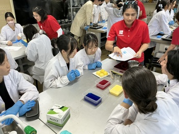 2025年11月21日(金)、高校3年理系クラスの授業において、イビデン物産株式会社 のご協力のもと、代替肉「ビーガンシュリンプ」の仕組みを科学的に理解する実験ワークショップを実施しました。本プログラムは、講義から実験まですべて英語で進行され、生徒にとって国際的な視点で食と科学を学ぶ貴重な機会となりました。