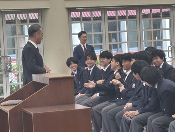 また、教頭からは「魚を乱獲すると森がなくなる。それはなぜでしょうか」という問いかけを通して、一つの行動や選択が、思いもよらない形でさまざまな事象に影響を及ぼす可能性があることについてのお話がありました。その中で、新しいことに挑戦する意義や、自ら考えて行動することの大切さについて、生徒たちが考える時間となりました。