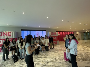 生徒19名と引率教員2名で、Marina One East Tower 16階にあるONEのグローバル本社(Global Headquarters)を訪問しました。