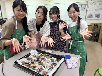 1月22日の活動では、スモアクッキーを作りました。活動の前に調べ学習として、「スモアクッキーとは何か」、「スモアとは何か」について調べました。スモアクッキーとは、アメリカの伝統的なお菓子である「スモア(S’more)」をクッキー風にアレンジしたスイーツです。スモアは、グラハムクラッカーでチョコレートと焼いたマシュマロを挟んで食べるキャンプの定番デザートで、「Some more(もう少しほしい)」という言葉が名前の由来とされています。今回は、スモアクッキーの飾り付けもしました。みんな、個性のあるクッキーをたくさん作りました。
